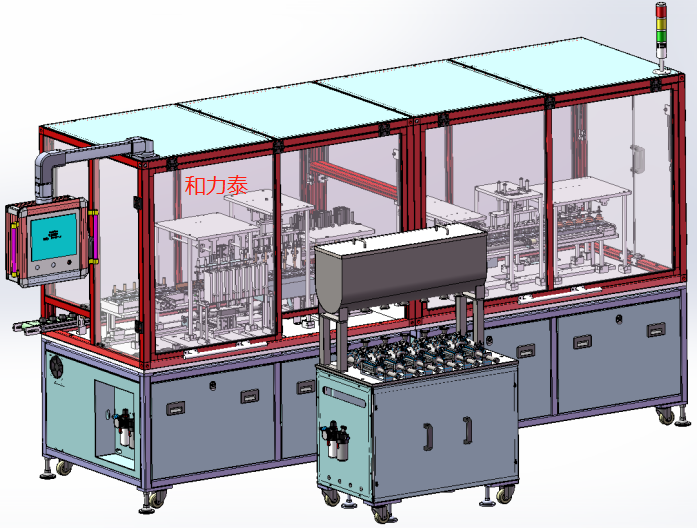(2)機器操作簡單,產(chǎn)品置于定制的模具中,模具載著產(chǎn)品循環(huán)流轉(zhuǎn),每個工位依次排列,產(chǎn)品流轉(zhuǎn)至每個工位,各工位只需完成自己的動作,不存在動作先后銜接,交叉,沒有碰撞。