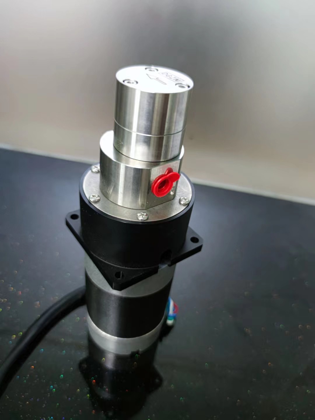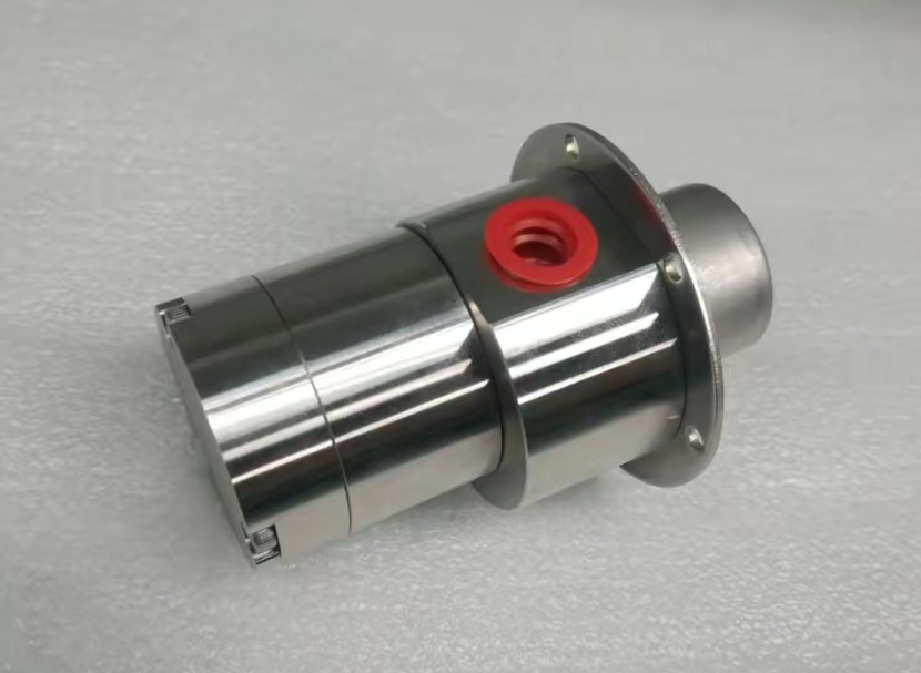 磁力齒輪泵,采用磁力耦合傳動,實現(xiàn)無泄漏、無脈動平穩(wěn)輸送。316不銹鋼的殼體,PEEK材料的齒輪,聚四氟乙烯的密封材料。采用直流無刷電機為動力,電機軸端和稀土永磁的外磁環(huán)連接,驅(qū)動磁力齒輪泵工作